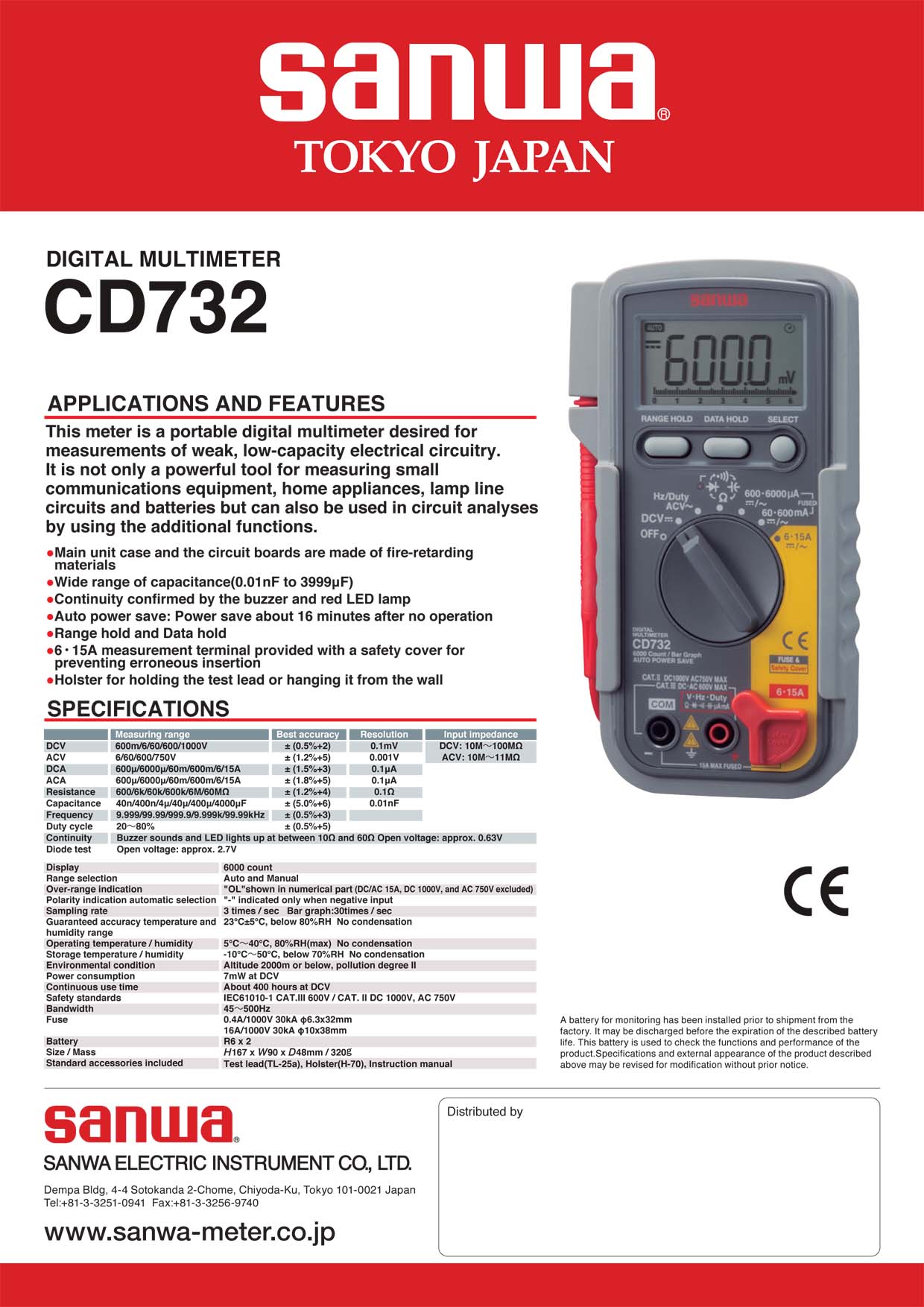 | CD732 | Measuring range | Best accuracy | Resolution | Input impedance |